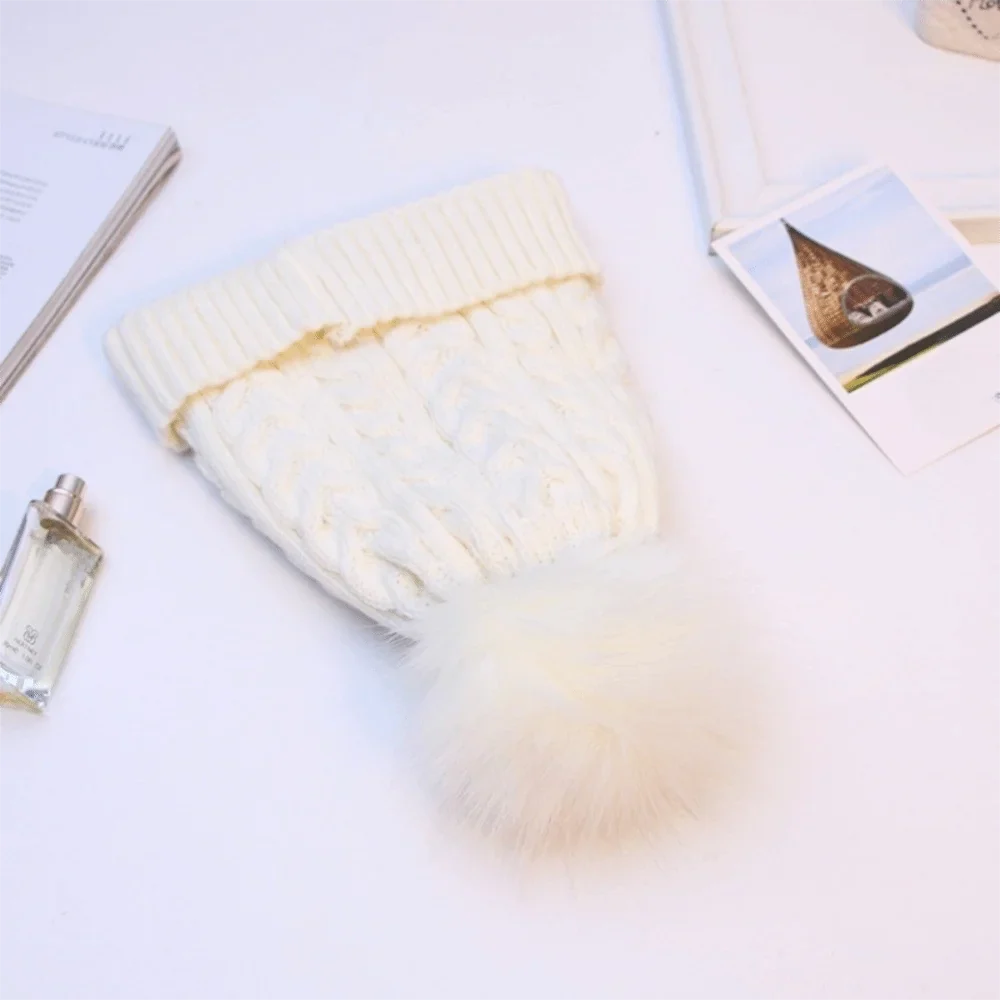 • Détail : Tricot tressé et pompon sur le dessus
