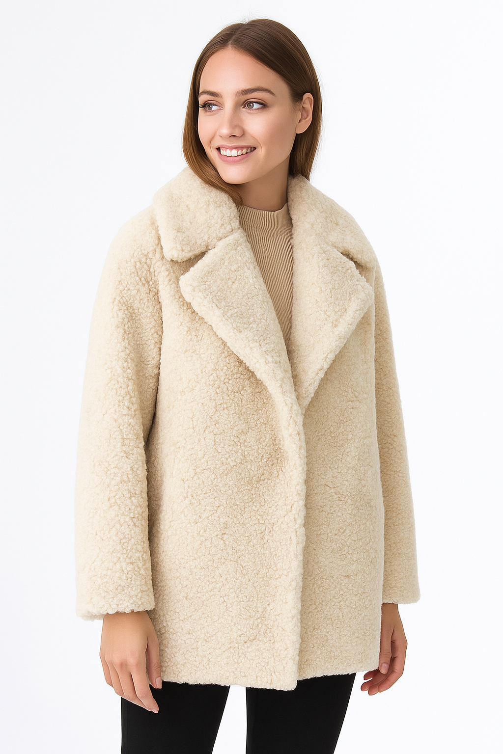Ce manteau a une texture douce et enveloppante qui procure une sensation de chaleur immédiate. Sa surface duveteuse crée un volume léger qui accompagne les journées froides, tout en conservant une esthétique décontractée et contemporaine. La silhouette courte facilite les mouvements et permet de l'associer à différents vêtements sans perdre en confort.