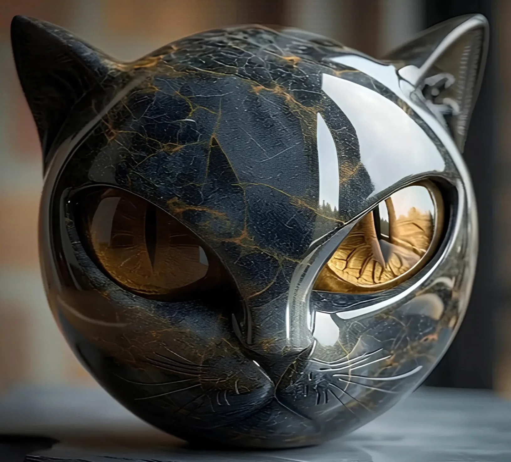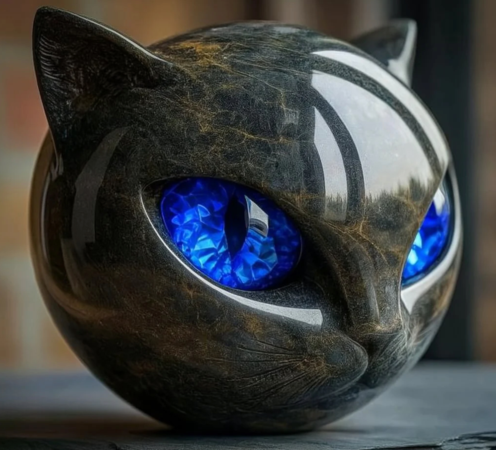 Œil d'Élina – Sculpture Féline Mystique en Marbre Poli