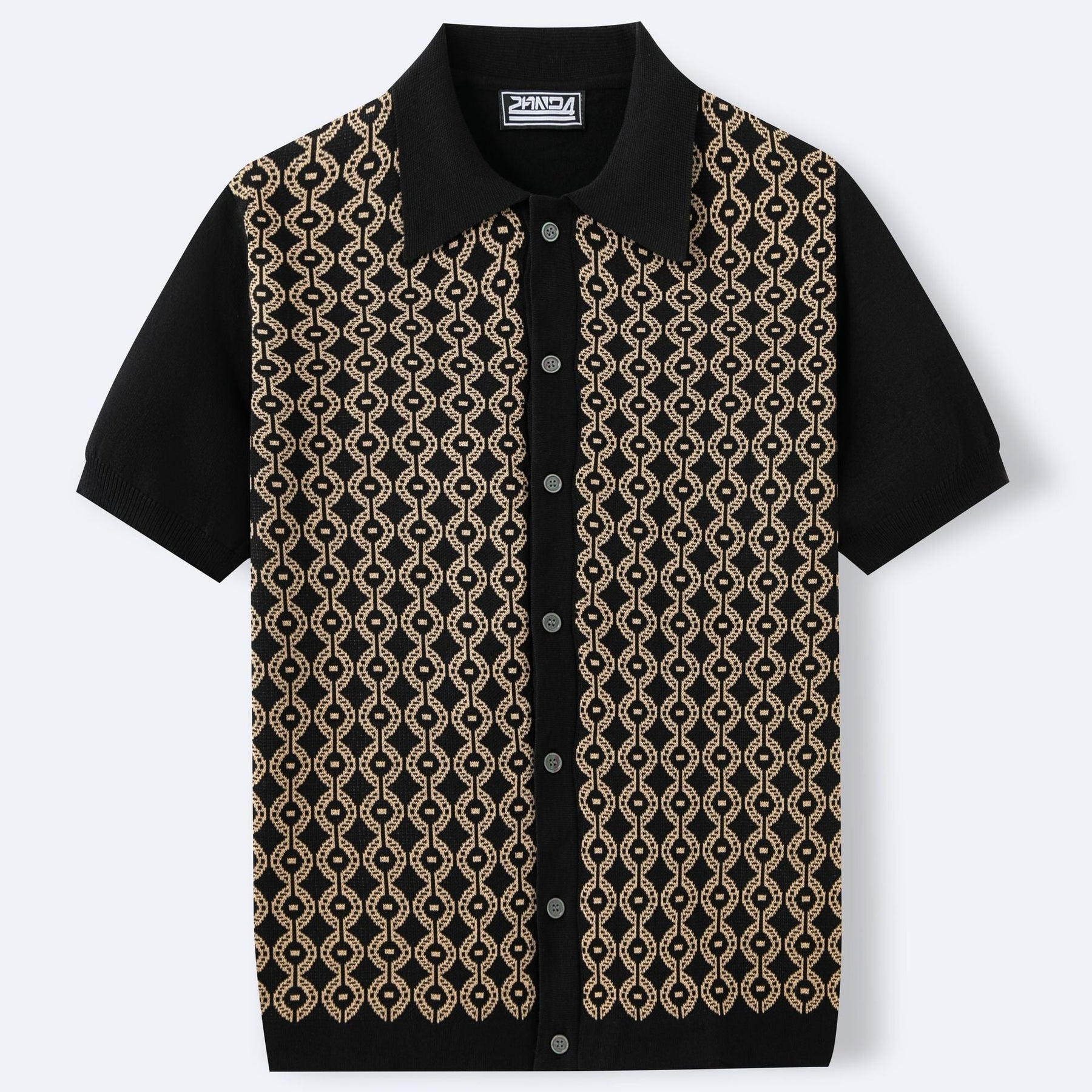 Conçu pour ceux qui apprécient les détails uniques, ce polo à manches courtes associe un motif jacquard géométrique à une silhouette moderne et sophistiquée. Le tissu tricoté apporte texture et confort, tandis que la patte de boutonnage sur le devant et le col classique apportent structure et élégance.