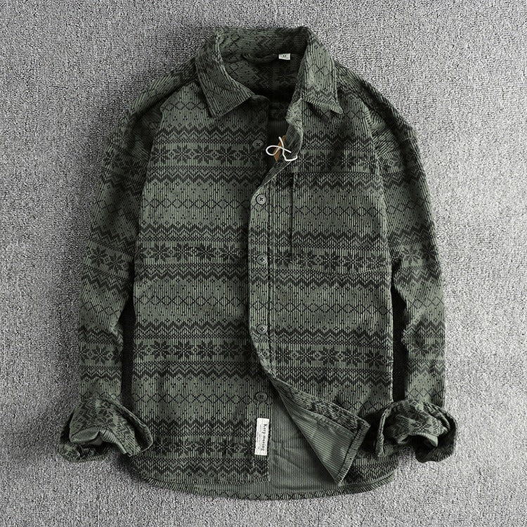 Chemise à manches longues en velours côtelé à imprimé ethnique pour hommes - Mauro