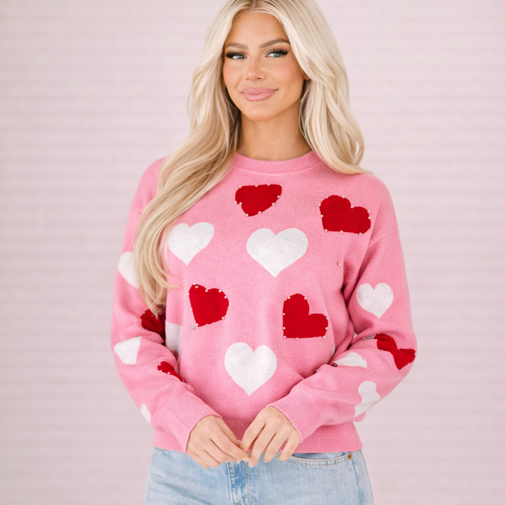 Pull tricoté avec des cœurs pour femmes - Karsvi