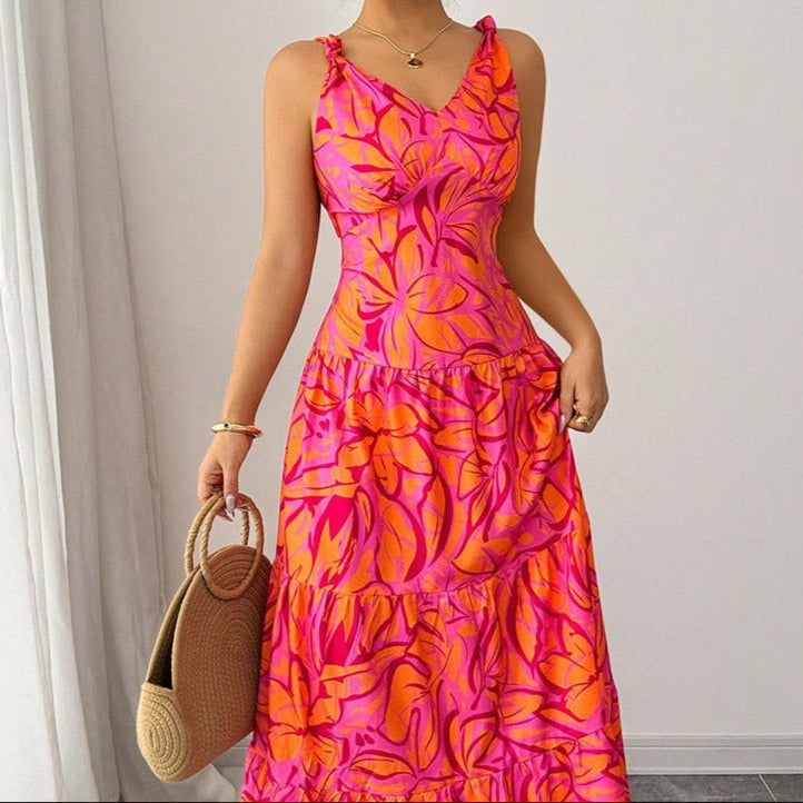 Robe longue pour femme, imprimé floral, bretelles découpées - Moenia