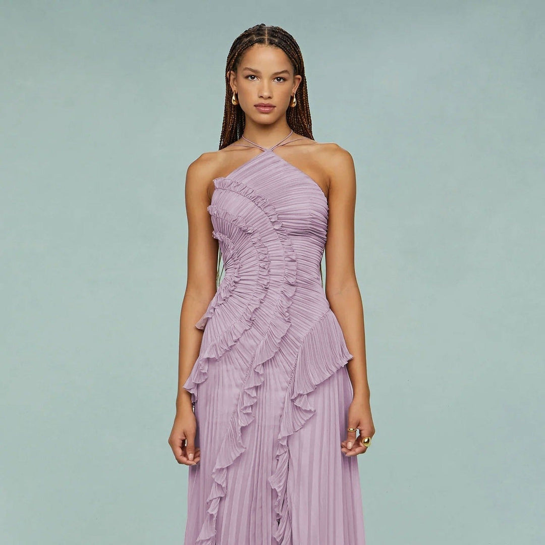 Élégante robe longue en mousseline de soie plissée asymétrique - Violet