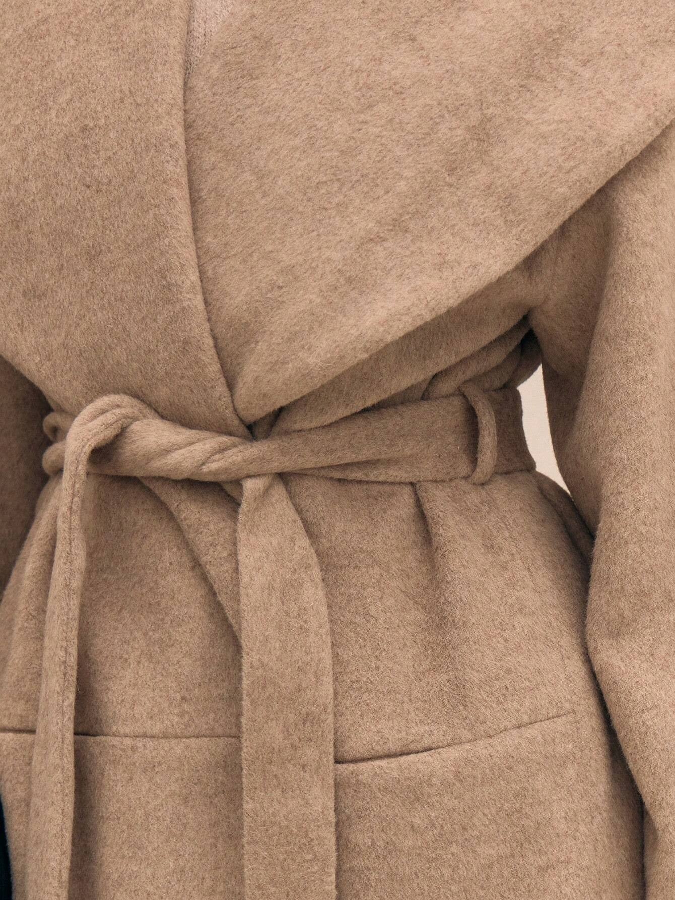 Élégant manteau ceinturé mi-long à col large - Liz